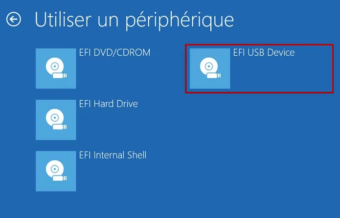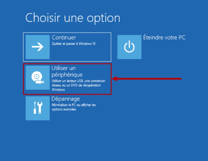 Veuillez patienter un instant" apparaisse à l'écran. Dès que le message apparaît, vous pouvez relâcher la touche "Shift".Après le redémarrage, l'écran suivant s'affiche : Sélectionnez l'option "
