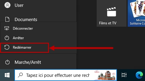Tout en maintenant la touche "Shift" enfoncée, sélectionnez "Redémarrer"
